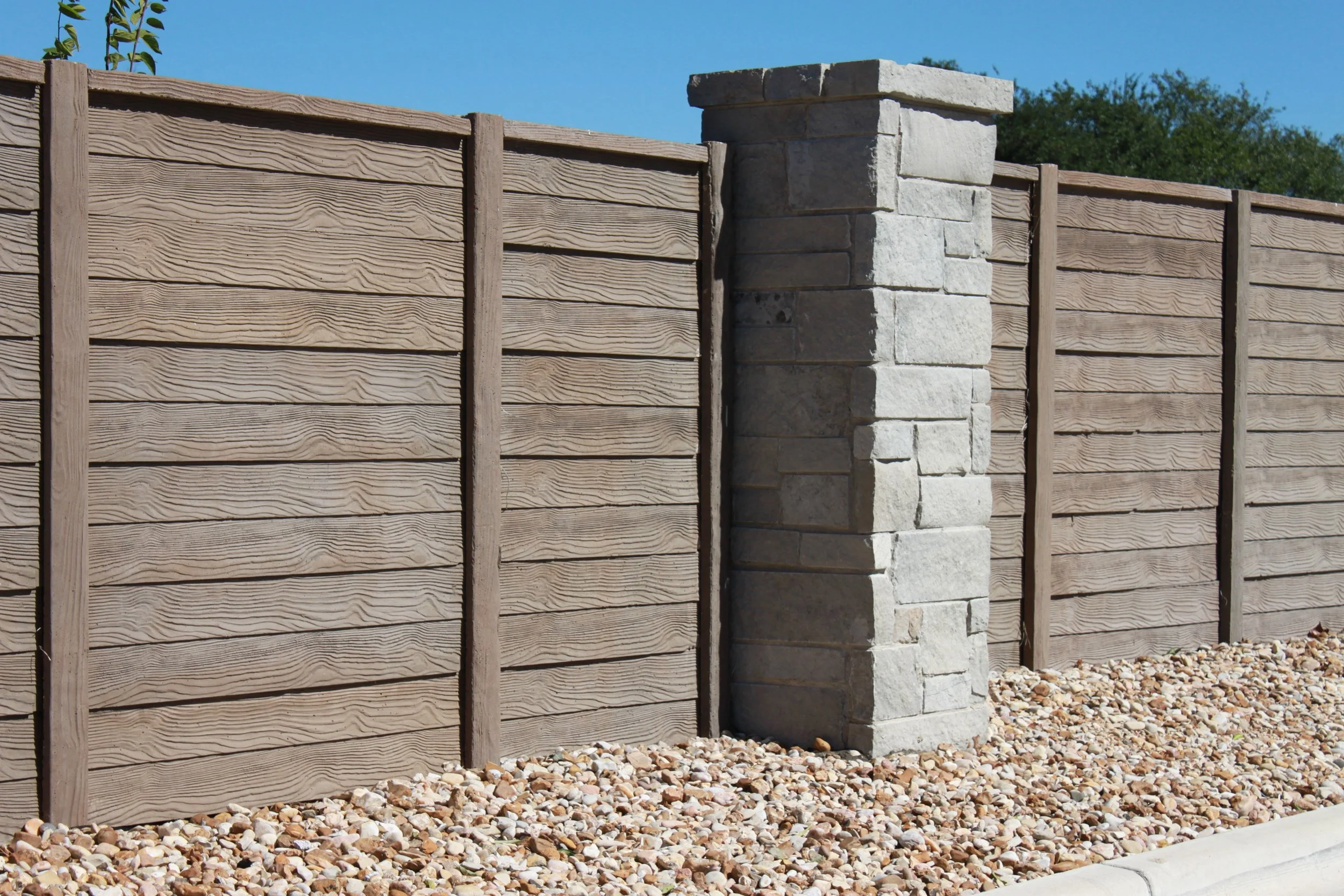 Stone Look combines the look of traditional masonry fence with the with the ease and cost effectiveness of pre caste concrete fence. Available in Llano and Sonoma colors.